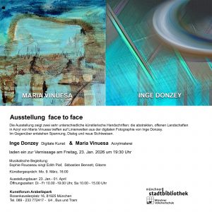 Jan. 23 2026 - Apr. 01 2026 Ausstellung „Face to Face“ von Inge Donzey I Kunstforum Arabellapark Kunstforum Arabellapark