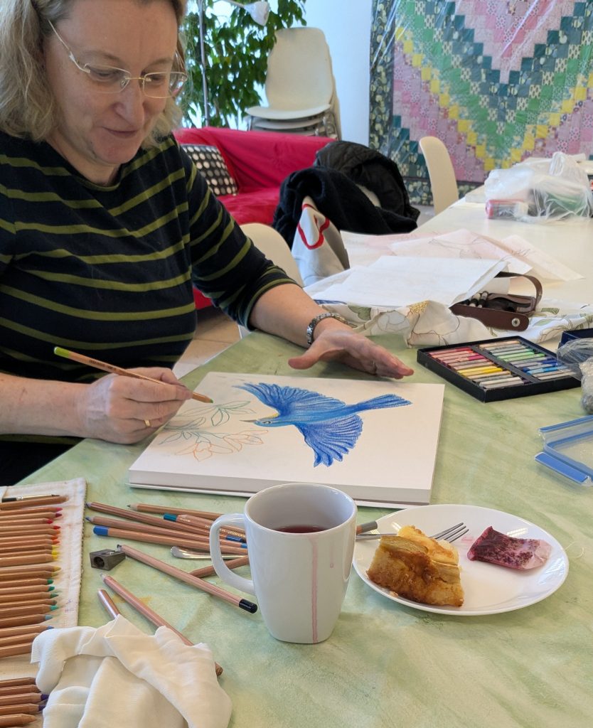 Unsere Maler*Innen, Kalligraph*Innen, Zeichner*Innen und andere künstlerisch Interessierte wie Fadengrafiker*innen treffen sich am ersten Samstag-Nachmittag im Monat zum gemeinsamen Gestalten unter der Leitung von Dr. Franz Still. Dafür steht uns im Nachbarschaftstreff baum20 ein Raum zur Verfügung.